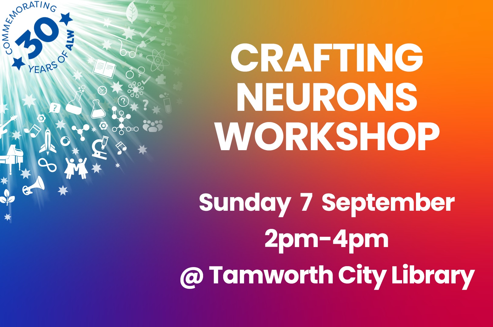 Sep 7 2:00 pm - 4:00 pm Neural Knitworks Workshop: crochet, knit or knot a neuron! – Adult Learners Week Tamworth City Library 466 Peel Street, Tamworth Event Details Get Directions